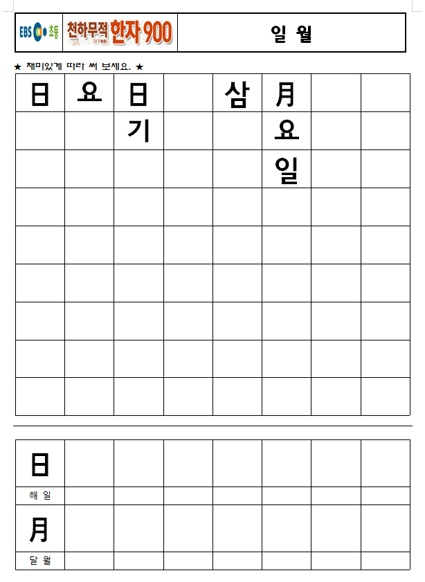 내 블로그 '공부자료나눔'에 가면 아이에게 한자를 알려주기 시작하면서 한국어문회에서 주최하...